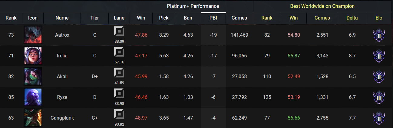 - 보시다시피 위에서부터 전부 숙련도와 이해도에 따라 성능이 크게 달라지는 조작 난이도가 어려운 챔피언들입니다.
