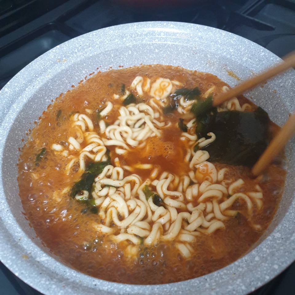 적당히 끓이고 와이프랑 딱 한 입 먹는 순간