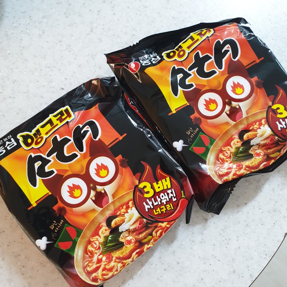 다행히 둘다 가장 좋아하는 라면은 너구리! 근데 3배 매워졌다니 꼭 먹어봐야하지 않겠어요?