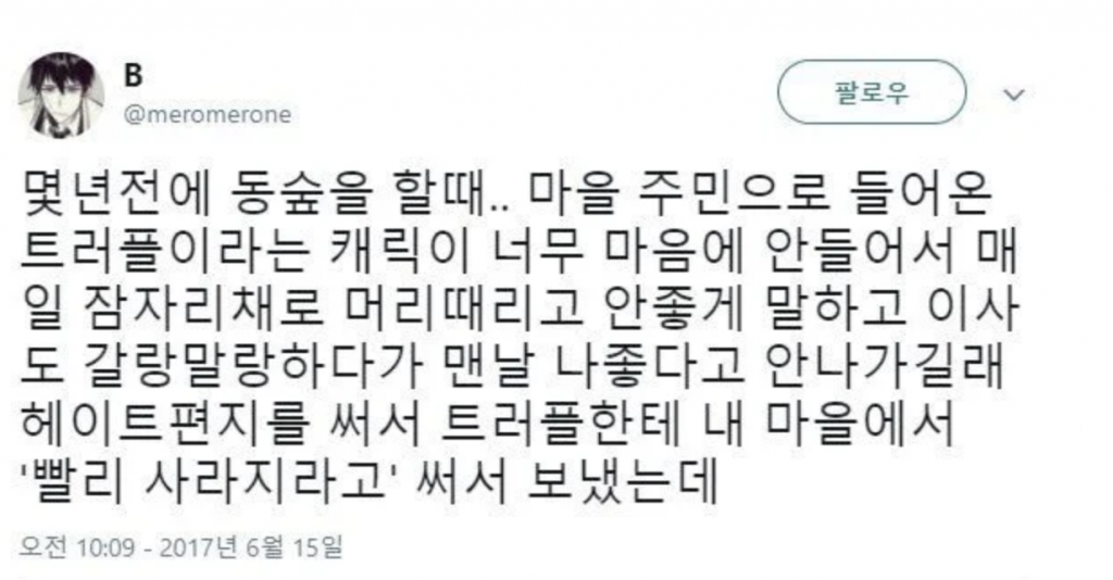 1. 과거 동숲을 플레이할 때 '트러플'이라는 NPC를 싫어하게 된 글쓴이