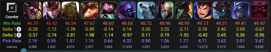 - 나머지 챔피언들은 어느 정도 극복이 가능한 상성
