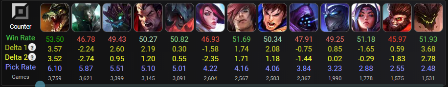 - 상대하기 수월한 챔피언/카운터 챔피언을 소개해드리기에 앞서 통계의 정확도를 위해 'common matchups'을 올릴게요