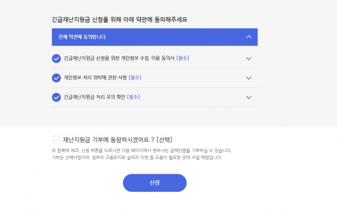 하지만 지금 신청 과정에서 원치 않는 기부금 동의가 이루어지는 사례가 많다고합니다. 내용을 꼼꼼히 읽어보고 체크박스 선택에서 전체동의를하고 무심코 넘어가서 원치않는 기부를 하는 일이 없도록 주의해야겠습니다