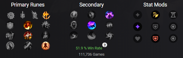 - 룬은 크게 '정복자'와 '난입'의 선택지가 있지만 정복자 룬의 효율이 가장 좋은 것으로 집계됩니다
